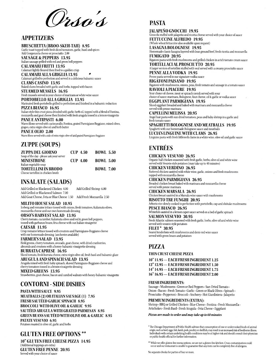 Welcome to Orso's, a charming Italian restaurant nestled in the heart of Old Town, Chicago. Located at 1401 N Wells St, this delightful eatery captures the essence of traditional Italian cuisine, serving up beloved dishes in a cozy, romantic atmosphere that feels both inviting and elegant.