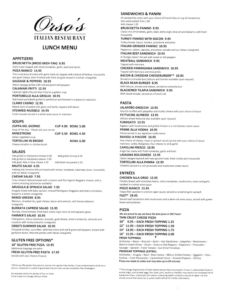 Whether it's a romantic dinner date or a casual lunch with friends, Orso's provides an unforgettable Italian dining experience, combining delightful flavors, charming atmosphere, and attentive service. Once you visit, you’ll understand why Orso's is a beloved gem in Chicago’s vibrant dining scene.