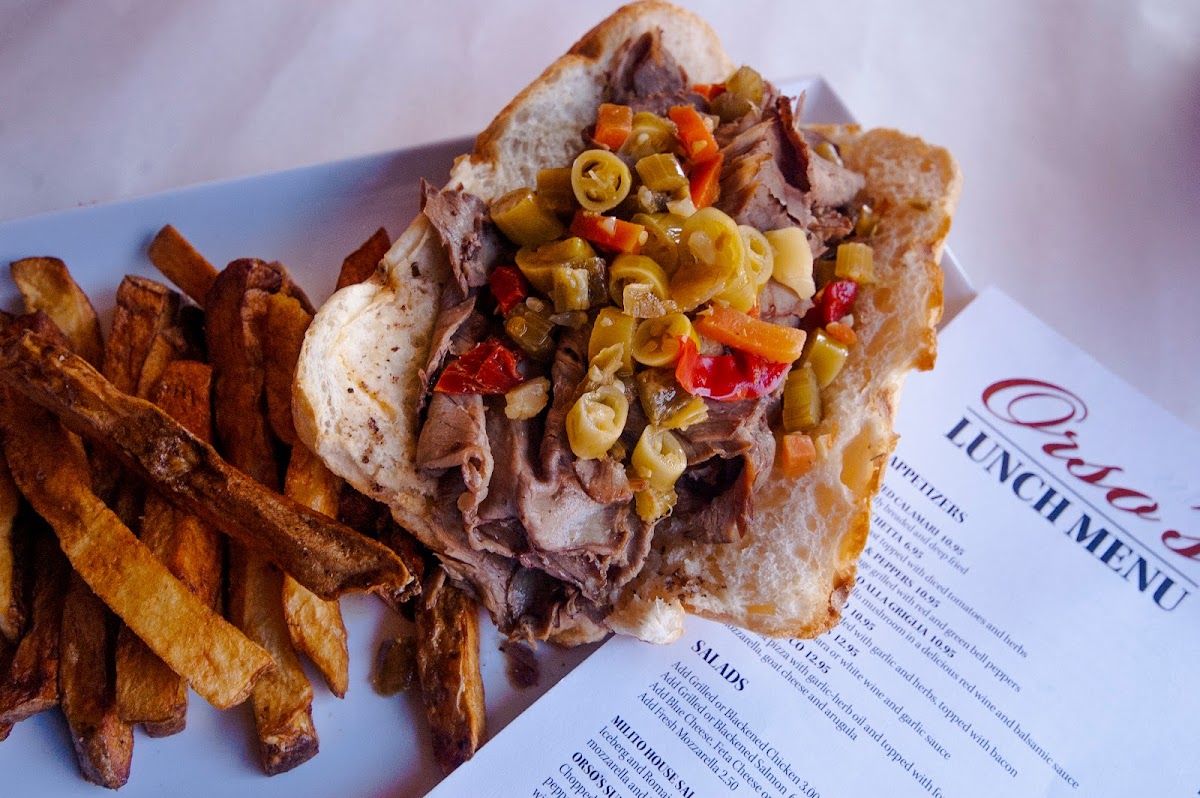 As the sun sets, Orso's transforms into a haven for dinner enthusiasts. Their Chicken Vesuvio is a must-try—an organic half chicken, perfectly seasoned with fresh garlic and herbs, served alongside Vesuvio-style potatoes that are wonderfully crispy and infused with flavor ($24.95).